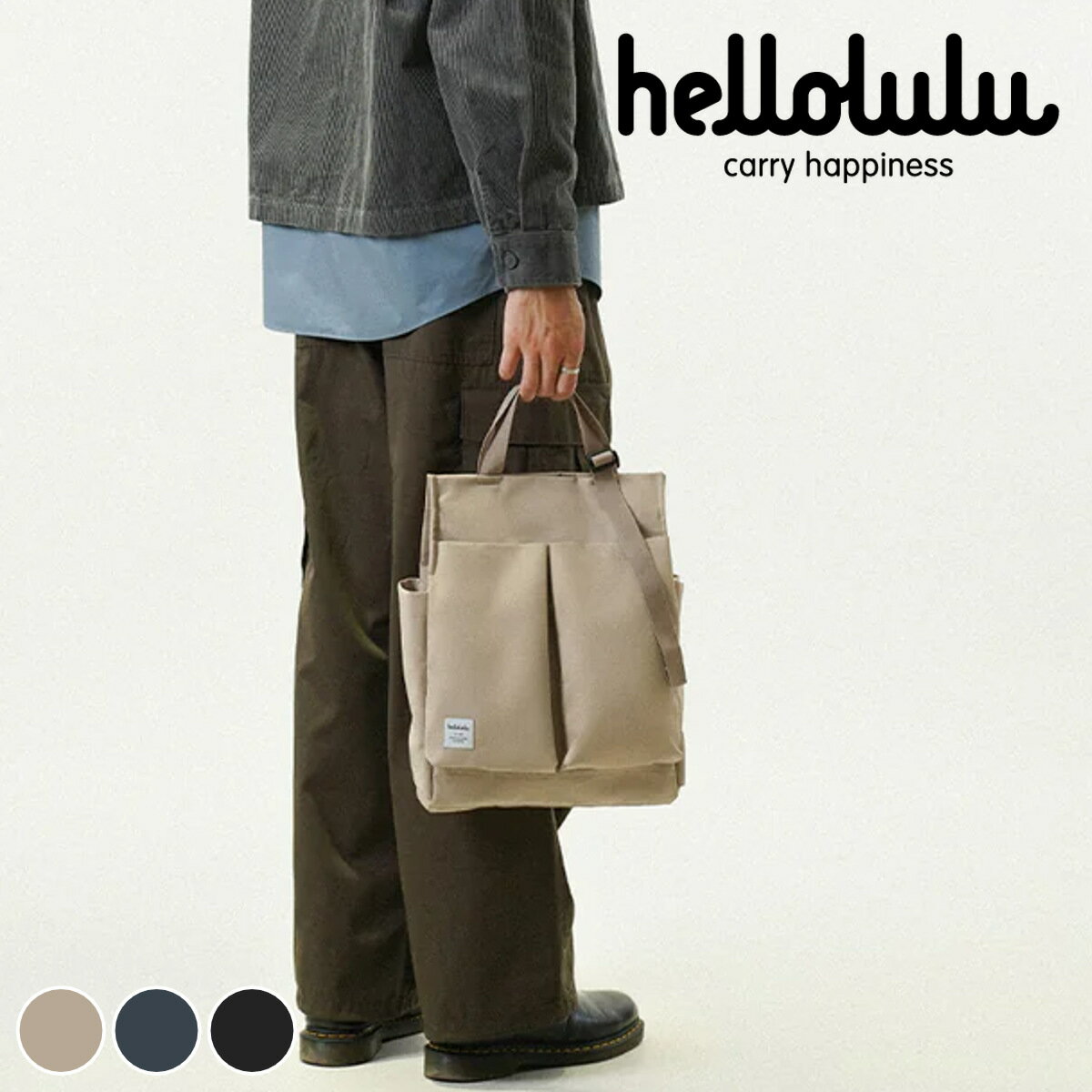 サイズ約 幅43×奥行13×高さ29(cm)PC収納ポケット:幅31.3×奥行1.6×22.1(cm)※最大14インチのノートPCに対応重量約 480g容量約 7.5L内容量1個材質100%PETリサイクルポリエステル種類FogKhaki、DarkSapphire、FlatBlack生産国中国製耐荷重約 6kg区分返品・キャンセル区分(小型商品)ギフトラッピングページを見るトートバッグ Hellolulu Lena 3WAY オールデイトート 7.5Lおすすめポイントシーンに合わせて持ち方を変えられる3wayバッグ手持ち・肩掛け・斜め掛けの3way仕様のトートバッグです。 長さ調節可能な持ち手と取り外し可能なショルダーストラップで、いつでもスタイルを簡単に切り替えられます。 快適な使い心地と嬉しい機能満載で、通勤・通学など毎日のバッグとして活躍してくれます。 環境にやさしい軽量生地を使用プラスチック廃棄物をリサイクルしたポリエステル素材を使用しています。 軽量で使いやすいだけでなく環境にもやさしいアイテムです。 撥水加工が施されているので、雨の日やアウトドアシーンでも安心です。 商品詳細収納力抜群のメイン収納メイン収納は、中身が整理しやすい大小のポケットが付いた充実収納。 小物類が迷子になりにくく、荷物もスムーズに出し入れができます。 ノートPCが入るポケットは、最大14インチまでのノートPCが収納可能です。 パット入りなので、大切なPCや書類もしっかりと守ります。 ボトルを倒さず持ち運べるメイン収納にはボトルホルダーが付いています。 水筒や500mlペットボトル、折り畳み傘なども倒すことなく持ち運べます。 キークリップ付き前面収納前面にも、文庫本も入る大きなポケットが付いています。 ポケット内側にはキークリップ付きで、鍵やイヤホンなどさっと取り出したい物の収納に便利です。 肩に掛けたままでも取り出せる背面収納背面にはファスナーポケットが付いています。 スマホや財布などの貴重品収納に最適で、肩に掛けたままでも荷物を取り出せます。 耐久性の高いショルダーストラップショルダーストラップのパーツには、肩にかかる圧力を軽減する頑丈なUTX Duraflexを使用しています。 本やノートPCなどの重い荷物も安心して持ち運べます。 商品画像カラーサイズブランド紹介hellolulu(ハロルル)は、2005年に香港で生まれたバッグブランドです。 「シンプルで、楽しく、使いやすい」バッグで持つ人を楽しくさせたいというコンセプトは『Carry Happiness』というブランドメッセージにも表現されています。 使う人たち一人一人の個性をより際立たせながらも、楽しくクリエイティビティにあふれた生活へと導いてくれる、そんな予感を期待させるブランドです。 関連キーワード:ノートパソコン ノートPC PCバッグ タブレット 収納 カバン クロスボディ 手持ち マザーズバッグ ママバッグ ポリエステル ポケット 女性 女子 男性 男子 ユニセックス 男女兼用 オシャレ お洒落 シンプル カジュアル 軽量 UTX Duraflex バックル 調整可能 取り外し可能 おすすめ 人気 オススメ 使いやすい 機能的 多収納 日常 普段使い プレゼント 贈り物 ギフト ブランド 香港 耐久性 内ポケット 前面ポケット 背面ポケット キークリップ ボトルホルダー ボトル収納 旅行 トラベル 日帰り 小旅行 ビジネス 仕事 オフィス 出張 プレゼン 大学 学校 講義 授業 高校生 お出かけ 買い物 街歩き ベージュ 茶 ブラック 黒 ネイビー LH14864 LH14259 関連商品はこちらショルダーバッグ Hellolulu JAM 13,860円トートバッグ Hellolulu Luke 314,850円 トートバッグ hellolulu ジュリアン12,980円トートバッグ Hellolulu BETH 712,870円リュック Hellolulu KELL 3WA19,800円リュック Hellolulu KELL new24,200円スリーブバッグ hellolulu サラ SA9,900円トートバッグ hellolulu 2WAY S8,580円?スリーブケース Hellolulu ARI 38,800円リュック Hellolulu CELESTE 9,900円バッグ Hellolulu EILIF new7,150円リュック Hellolulu ASTON 2W20,350円 トートバッグ Hellolulu Lena 3WAY オールデイトート 7.5L ( ハロルル バッグ ハンドバッグ ショルダーバッグ レディース メンズ 鞄 かばん 3way 軽い 撥水 通学 通勤 肩掛け 手提げ ファスナー PC収納 おしゃれ ) 14,850 円