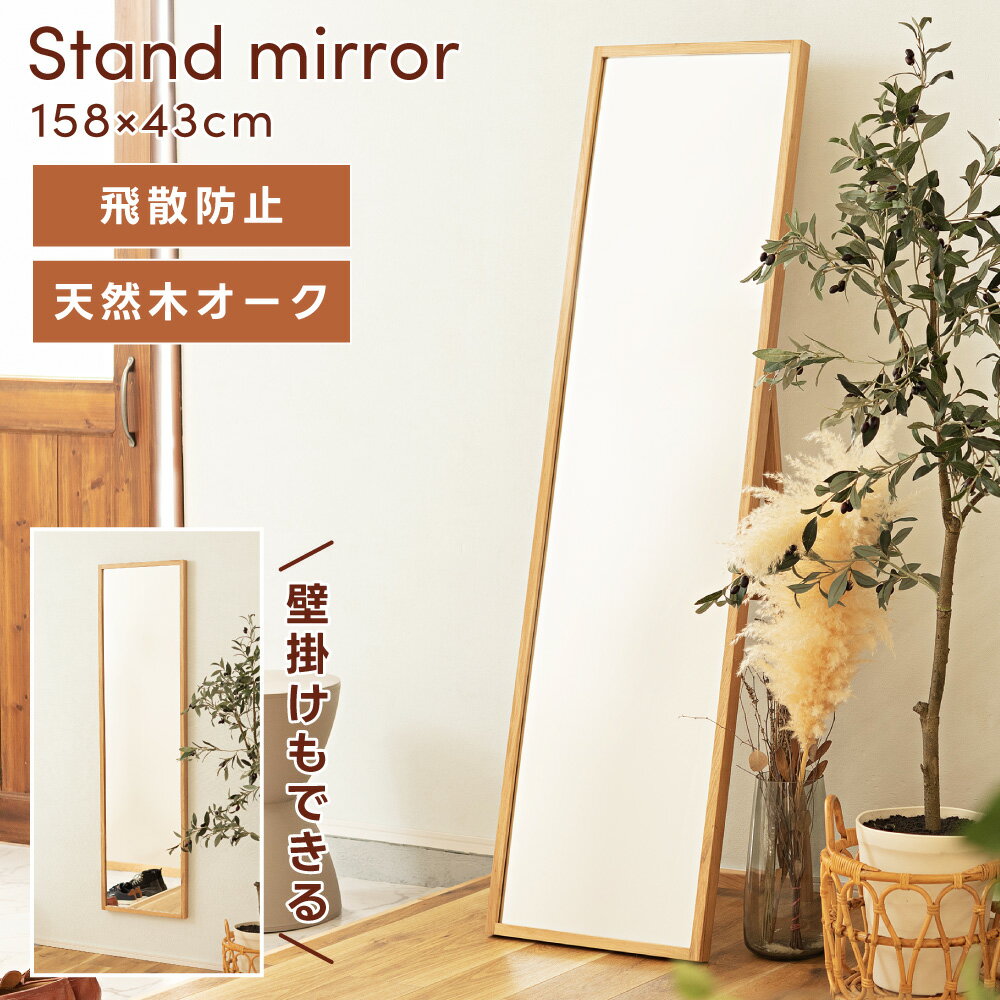 スタンドミラー 鏡 かがみ ミラー スタンド 木製 天然木 オーク 壁掛け 壁掛けミラー ウォールミラー 壁付け 姿見 全身鏡 立てかけ 北欧 シンプル 韓国 飛散防止 長方形 43×158 158×43 リビング 玄関 寝室 ベッドルーム 縦 ベージュ 21,860 円