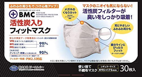 ブラック/ふつうサイズ (240枚)/-・パッケージ個数:8説明 活性炭フィルターでニオイをしっかり吸着! マスクのニオイも気にならない! 消臭に特化した活性炭入り四層構造で保湿効果も抜群!!! BMC 活性炭入りフィットマスク 黒 30枚入×8個 6,176 円
