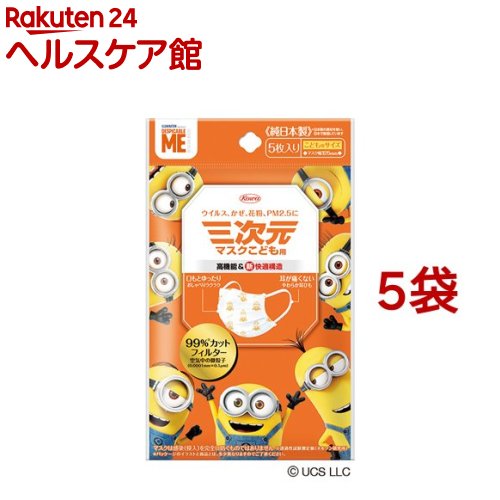 お店TOP>衛生医療>マスク>小さめマスク>キャラクターマスク>三次元マスク ミニオン こども用サイズ (5枚入*5袋セット)お一人様20セットまで。 【三次元マスク ミニオン こども用サイズの商品詳細】●ポイント1:「三次元マスク」のミニオンデザイン!・こどもから大人まで幅広い人気の「ミニオン」がプリントされた楽しいデザインの三次元マスク(ミニオン)です。 ・さらにやわらか耳ひも採用で耳が痛くならず*、快適にお使い頂けます。 *メーカー従来品比●ポイント2:銀系抗菌+ダブル捕集フィルターが99%*カット!高機能5層構造!・ダブル捕集フィルターが空気中の微粒子(0.0001mm=0.1μm)を99%*カット。 *透過性試験測定値(ネルソン研究所)・銀系抗菌フィルター内蔵:フィルター表面の菌の増殖を抑制。 (全ての菌に効くわけではありません)・鼻やほおのスキマをブロック:形状保持ノーズフィッターとサイドフィットフォルム(意匠登録済み)がスキマをブロック。 ●ポイント3:口元の空間をキープし、息苦しさを解消!口の動きにも柔軟に対応する高快適性・つけ心地UP!・ふんわりタッチで、長時間つけても痛くない*。 *メーカー従来品比・口もとゆったり:息苦しくなく、話し続けてもズレにくく快適。 ・チクチクしにくい高品質不織布:低毛羽立ちシートで長時間の使用も快適。 ・メガネのくもりもブロック:フォグブロックフィルムが呼気の上昇をブロック。 ●かぜ、花粉、PM2.5に。 *マスクは感染(侵入)を完全に防ぐものではありません。 【使用方法】1.柄のついている面を「外側」にして着用してください。 2.ブリーツの折り目を縦に伸ばしてマスクを広げます。 3.マスク上部のノーズフィッターを鼻の形に合わせて曲げてください。 *メガネがくもりにくくなります。 【三次元マスク ミニオン こども用サイズの原材料】本体・フィルター部:ポリプロピレン、バルプ、ポリエステル、ポリエチレン耳ひも部:ポリエステル、ポリウレタンノーズフィッター:ポリエチレン【注意事項】・乳幼児や呼吸器に異常がある方は使用しないでください。 ・本品は有毒ガス、有害粉塵に対して効果はありません。 ・マスクのニオイで気分が悪くなったり、息苦しさを感じた場合は、使用を中止してください。 ・肌に異常がある方は、使用しないでください。 ・かゆみ・かぶれ等が生じた場合は直ちに使用を中止し、医師に相談してください。 ・金属に対しアレルギー症状がある方、またはアレルギーが疑われる方は使用しないでください。 ・火気のそばで使用しないでください。 ・本品は使いきりタイプですので洗って再使用はできません。 衛生面から1日1枚の使用をおすすめしますが、汚れが気になる場合は取り替えてください。 ・マスク上部にノーズフィッターがついていますので、取扱いに注意してください。 ・環境や個人差などにより、眼鏡がくもることがありますので、運転の際などは十分に注意してください。 ・乳幼児の手の届かない所に保管してください。 ・高温多湿な場所での保管は避けてください。 ・使用する分だけ外箱から取り出してください。 【原産国】日本【ブランド】三次元マスク【発売元、製造元、輸入元又は販売元】興和※説明文は単品の内容です。 ※より多くの方に購入いただくために、複数回注文いただいた場合はキャンセルさせていただくことがございます。 商品に関するお電話でのお問い合わせは、下記までお願い致します。 受付時間:平日9:00〜17:00(土、日、祝祭日はお休みです)OTC(一般薬)医薬品・化粧品:03-3279-7755ライフサポート品(雑貨品):03-3279-7560食料・飲料:03-3279-7159パワードコーヒー:0120-362-508リニューアルに伴い、パッケージ・内容等予告なく変更する場合がございます。 予めご了承ください。 ・単品JAN:4987067313204興和103-8433 東京都中央区日本橋本町三丁目4-14 ※お問合せ番号は商品詳細参照-広告文責:楽天グループ株式会社電話:050-5577-5042[マスク/ブランド:三次元マスク/] 三次元マスク ミニオン こども用サイズ(5枚入*5袋セット)【三次元マスク】 2,640 円