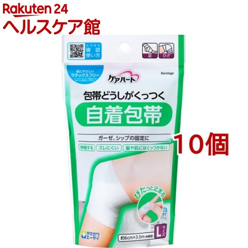 お店TOP>衛生医療>看護・医療用品>包帯類>包帯全部>ケアハート 包帯どうしがくっつく 自着包帯 Lサイズ (10個セット)【ケアハート 包帯どうしがくっつく 自着包帯 Lサイズの商品詳細】●伸縮する・ムレにくい・髪や肌にはくっつかない。 ●包帯どうしを重ねて巻くとそのままくっつきますので、包帯止めやテープがいらない、自着包帯です。 ●天然ゴムを使用していないラテックスフリー製品です。 ●皮膚や髪の毛につきませんので頭や、犬、猫などのペットにも使用できます。 ●包帯どうしがくっつくので、巻きにくい関節部でも簡単に巻くことができます。 ●通気性がある不織布素材を使用しています。 ●足、ひざに。 【使用方法】(1)心臓の遠いところから、体の近い方向に向けて巻いてください。 (2)固定できたら手もしくはハサミで切ります。 (3)最後に包帯が取れないように、軽く手で包帯を押さえてください。 【ケアハート 包帯どうしがくっつく 自着包帯 Lサイズの原材料】本体・・・ポリプロピレン、ポリウレタン粘着剤・・・合成ゴム【規格概要】サイズ:約6cm*3.5m(伸長時)【注意事項】・本品の使用により、発疹・発赤・かゆみなどの症状が現れた場合には、直ちに使用を中止し、医師にご相談ください。 ・強く引っ張って巻くと血行を阻害する恐れがありますので、少しゆるめに固定してください。 ・湿疹、かぶれ等のある場所、傷口には直接巻かないでください。 ・切れにくい場合はハサミを使用してください。 ・自着性を損ねますので、洗濯はしないでください。 ・乳幼児の手の届かないところに保管してください。 ・開封後は直射日光を避け、湿気の少ない清潔な場所に保管してください。 ・車内などの高温になる場合には保管しないでください。 ・保管環境により変色する場合がありますので、異常を感じた場合には廃棄してください。 【原産国】ドイツ【ブランド】ケアハート【発売元、製造元、輸入元又は販売元】玉川衛材※説明文は単品の内容です。 リニューアルに伴い、パッケージ・内容等予告なく変更する場合がございます。 予めご了承ください。 (ホウタイ ホータイ)・単品JAN:4901957124831玉川衛材東京都千代田区富士見1-8-19住友不動産富士見ビル14階03-4334-8857 広告文責:楽天グループ株式会社電話:050-5577-5043[包帯/ブランド:ケアハート/] ケアハート 包帯どうしがくっつく 自着包帯 Lサイズ(10個セット)【ケアハート】 3,609 円
