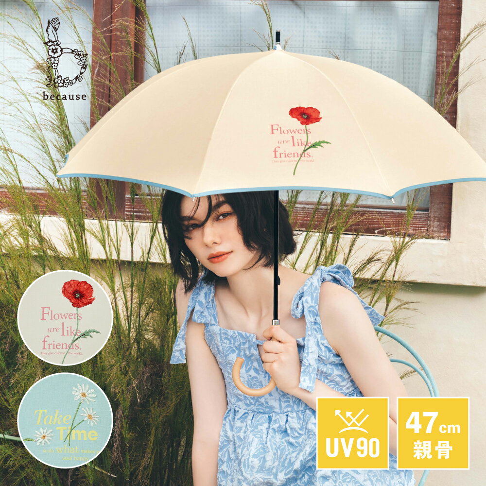 製品仕様 商品名 【because 公式】タイポフラワー刺繍 晴雨兼用 日傘 長傘 UVカット 紫外線対策 熱中症対策 遮光 涼しい レディース 女性 ギフト プレゼント おしゃれ お洒落 かさ 大人 かわいい 上品 フェミニン ビコーズ 傘 花柄 刺繍 ロゴプリント 麻風 サイズ/寸法 親骨/47㎝全長/64㎝直径/79㎝骨の数/8本重さ/約250g生産国/中国 素材/材質 生地/ポリエステル100%(防水はっ水加工)ハンドル素材/ウッド 色 グリーン/アイボリー ご注意事項 ○モニターの発色の具合によって実際のものと色が異なる場合がございます。 ご了承ください。 ○製品には尖った部分があります。 常に周囲の安全を確認してご使用下さい。 ○傘の開閉時には、顔や身体から離して使用して下さい。 ○傘生地には防水撥水加工を施し、縫製には撥水糸を使用していますが、激しい雨や長時間のご使用では雨が染み込むことがございます。 また飾り加工部分(刺繍、ステッチ、パイピング、テープ等)はデザインの特性上、完全な防水撥水加工が難しい場合があり雨が染みやすいのでご注意下さい。 ○ハンドクリームや日焼け止めクリーム等が、生地・手元の色落ちの原因になる場合があります。 ○ステッキがわりに使用しないで下さい。 ○手元、または骨の先端等が壊れたまま使用しないで下さい。 ○振り回したり投げたりしないで下さい。 ○強風の時は破損する恐れがありますので、注意してご使用下さい。 ○ご使用後は陰干しして充分に乾燥させて下さい。 濡れたまま放置すると生地の防水、撥水力の低下や骨の劣化につながります。 ○製品には構造上、骨同士が狭くなっている箇所がありますので、手や指を挟まない様に充分に注意してご使用下さい。 傘骨にグラスファイバーを使用している場合は、破損した際に破損部分を触るとトゲが刺さる場合がありますので、直接触らないようにして下さい。 ○ご使用の際は、生地をほぐしてから開閉して下さい。 無理に開くと骨が折れたり、傘全体に負担がかかる原因となります。 ○傘は必ず手に持ってご使用下さい。 ○お子様には保護者の方からご注意下さい。 その他商品説明 ○手開きタイプ ○Safe Guard(セーフガード)開閉時に指や爪を傷めないようにロクロ部分に安全カバーが付いています。 傘を開く時は親指を添えてカチッと音がするまで傘を広げてください。 抑えたまま広げると開けない場合があります。 ○SUN & RAINUVカット加工と防水・はっ水加工を施した【晴雨兼用傘】です。 ビコーズ because 日傘 傘 人気 色 グリーン アイボリー UVカット UV対策 レディース おしゃれ フラワー ロゴ 上品 かさ ビコーズの傘 傘のある暮らし 女子 かわいい ギフト プレゼント 大人 可愛い シンプル フェミニン 母の日model 身長:女性167cm グリーン 【because 公式】タイポフラワー刺繍 晴雨兼用 日傘 長傘 UVカット 紫外線対策 熱中症対策 遮光 涼しい レディース 女性 ギフト プレゼント おしゃれ お洒落 かさ 大人 かわいい 上品 フェミニン ビコーズ 傘 花柄 刺繍 ロゴプリント 麻風 3,190 円