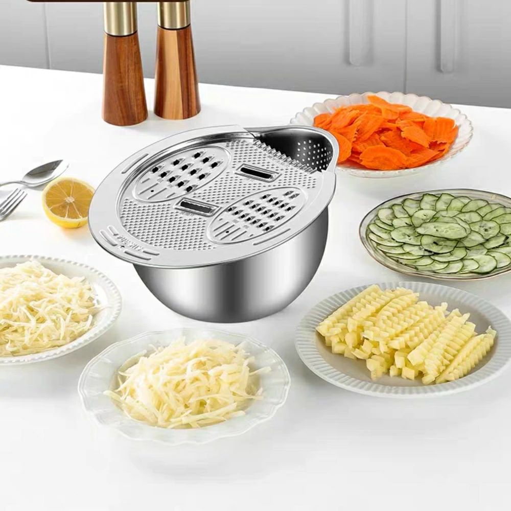 ステンレス製 水切り器 スライサー 野菜カッター 米とぎ器 ザル 千切り 果物洗い ボウル キッチンスライサー 3,751 円