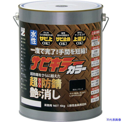 オレンジブック トラスコ中山 TRUSCOBANーZI 防錆塗料 サビキラーカラー艶消し 4kg つや消し黒 〔品番:BSKCTK04B〕[ 注番:3700146]特長●水性のエポキシ樹脂系の錆止めと上塗りが一度にできます。 ●防錆力に優れ食品衛生法にも合格した安心、安全な防錆塗料です。 仕様●色:艶消しブラック●容量(ml):2900●容量(L):2.9●容量(kg):4●使用温度範囲(℃):5℃〜80℃●容器タイプ:缶●摘要:サビ止め仕様2●標準塗布量:0.1〜0.14kg/[[M2]]●塗り面積:約0.7〜1.0[[M2]](2回塗り)●乾燥時間(指触):1時間(5℃)/20分(23℃)●塗り重ね時間(23℃):3時間(2度塗り)●塗装回数:1〜2回●希釈:水希釈率:0〜5%●塗装環境:温度5℃以上(湿度85%以下)●使用温度範囲:5〜80℃材質/仕上●エポキシエステル樹脂セット内容/付属品注意原産国(名称)日本JANコード4562375772471本体質量4.45kgオレンジブック トラスコ中山 TRUSCOBANーZI 防錆塗料 サビキラーカラー艶消し 4kg つや消し黒 〔品番:BSKCTK04B〕[注番:3700146][本体質量:4.45kg]《包装時基本サイズ:243×194×194》〔包装時質量:5kg〕分類》化学製品》化学製品》防錆剤☆納期情報:仕入れ先通常在庫品 (欠品の場合有り) ■BANーZI 防錆塗料 サビキラーカラー艶消し 4kg つや消し黒 BSKCTK04B(3700146) 19,580 円