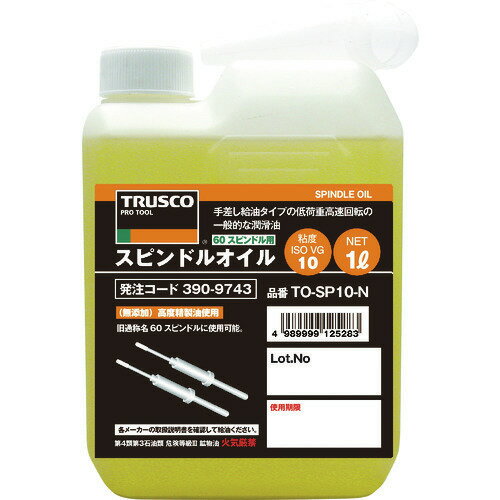 オレンジブック トラスコ中山 TRUSCOTRUSCO スピンドルオイル1L粘度VG10(60スピンドル用) 〔品番:TOSP10N〕[ 注番:3909743]特長●高度精製油を使用しています。 ●旧通称名 60スピンドルに使用可能です。 用途●手差し給油タイプの低荷重高速回転の一般的な潤滑油。 仕様●色:黄●容量(L):1●容量(ml):1000●粘度グレード:ISO VG10仕様2●容器:ボトル●JIS規格品:JIS K 2239(軸受油)適合●60スピンドル用●鉱油の種類:高度精製油材質/仕上●主成分:潤滑基油セット内容/付属品●注入ノズル注意●危険物の品目:第3石油類●危険物の類別:第4類●危険等級:3●危険物の数量(L):1●提供不可:ミルシート原産国(名称)日本JANコード4989999125283本体質量960gオレンジブック トラスコ中山 TRUSCOTRUSCO スピンドルオイル1L粘度VG10(60スピンドル用) 〔品番:TOSP10N〕[注番:3909743][本体質量:960g]《包装時基本サイズ:65×125×205》〔包装時質量:930g〕分類》化学製品》化学製品》潤滑油☆納期情報:仕入れ先通常在庫品 (欠品の場合有り) ■TRUSCO スピンドルオイル1L粘度VG10(60スピンドル用) TOSP10N(3909743) 1,342 円
