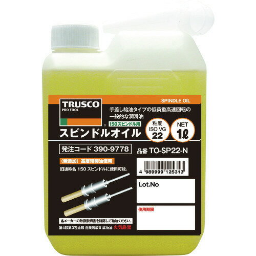 オレンジブック トラスコ中山 TRUSCOTRUSCO スピンドルオイル1L粘度VG22(150スピンドル用) 〔品番:TOSP22N〕[ 注番:3909778]特長●高度精製油を使用しています。 ●旧通称名 150スピンドルに使用可能です。 用途●手差し給油タイプの低荷重高速回転の一般的な潤滑油。 仕様●色:黄●容量(L):1●容量(ml):1000●粘度グレード:ISO VG22仕様2●容器:ボトル●JIS規格品:JIS K 2239(軸受油)適合●150スピンドル用●鉱油の種類:高度精製油材質/仕上●主成分:潤滑基油セット内容/付属品●注入ノズル注意●危険物の品目:第4石油類●危険物の類別:第4類●危険等級:3●危険物の数量(L):1●提供不可:ミルシート原産国(名称)日本JANコード4989999125313本体質量960gオレンジブック トラスコ中山 TRUSCOTRUSCO スピンドルオイル1L粘度VG22(150スピンドル用) 〔品番:TOSP22N〕[注番:3909778][本体質量:960g]《包装時基本サイズ:65×125×205》〔包装時質量:940g〕分類》化学製品》化学製品》潤滑油☆納期情報:仕入れ先通常在庫品 (欠品の場合有り) ■TRUSCO スピンドルオイル1L粘度VG22(150スピンドル用) TOSP22N(3909778) 1,243 円