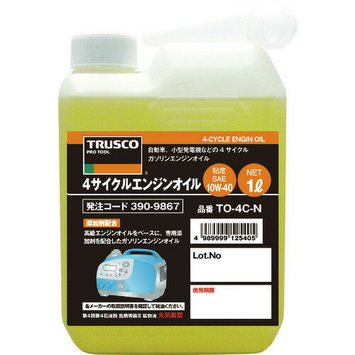 オレンジブック トラスコ中山 TRUSCOTRUSCO 4サイクルエンジンオイル1L 〔品番:TO4CN〕[ 注番:3909867]特長●高級エンジンオイルベース油に専用添加剤を配合した、ガソリンエンジン専用オイルです。 用途●自動車・小型発電機などに。 仕様●色:褐色●容量(L):1●容量(ml):1000●粘度グレード:SAE10W-40相当仕様2●API規格SJ級相当品●容器:1Lボトル●原液量:1L材質/仕上●主成分:潤滑基油セット内容/付属品●注入ノズル注意●危険物の品目:第4石油類●危険物の類別:第4類●危険等級:3●危険物の数量(L):1燃料用混合油ではございません。 ●提供不可:ミルシート原産国(名称)日本JANコード4989999125405本体質量980gオレンジブック トラスコ中山 TRUSCOTRUSCO 4サイクルエンジンオイル1L 〔品番:TO4CN〕[注番:3909867][本体質量:980g]《包装時基本サイズ:123×63×205》〔包装時質量:960g〕分類》化学製品》化学製品》潤滑油☆納期情報:仕入れ先通常在庫品 (欠品の場合有り) ■TRUSCO 4サイクルエンジンオイル1L TO4CN(3909867) 1,782 円