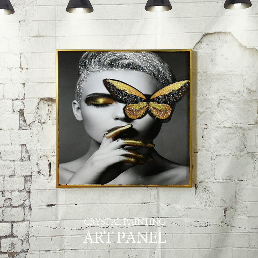 期間中ポイント10倍 アートパネル モダン おしゃれ モノクロ 玄関 モノトーン 50×50 水晶絵 人物 女性 壁掛けパネル 絵 アート かっこいい 人物画 フレーム付き 8,180 円