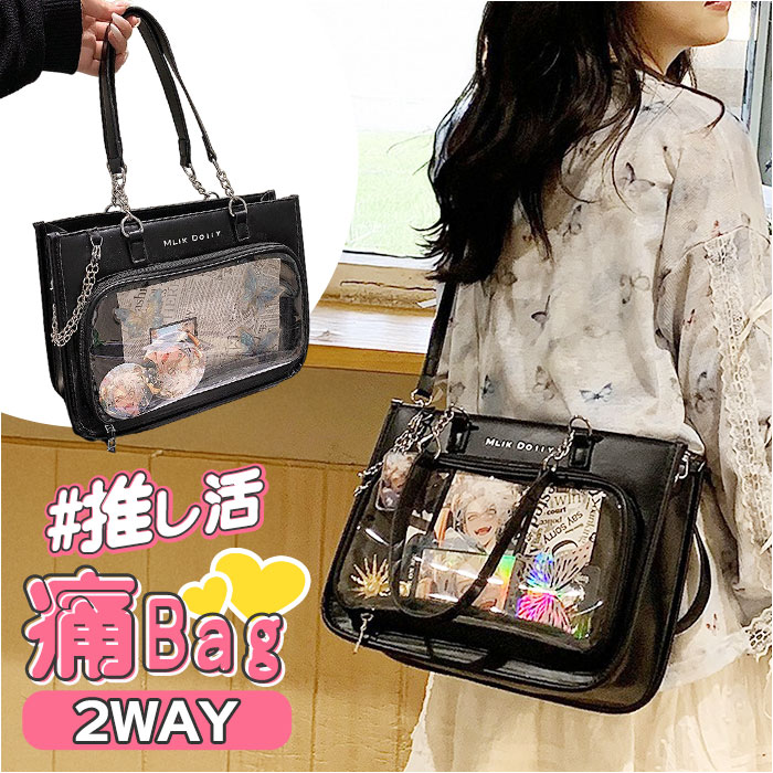 2way 痛バッグ 通販 痛バ ショルダー 見せバッグ ショルダーバッグ トートバッグ 肩がけバッグ レディース 斜めがけ 斜め掛け トート バッグ バック かばん 肩掛け 推し活 イベント 缶バッジ 透明窓 可愛い かわいい おしゃれ 3,140 円