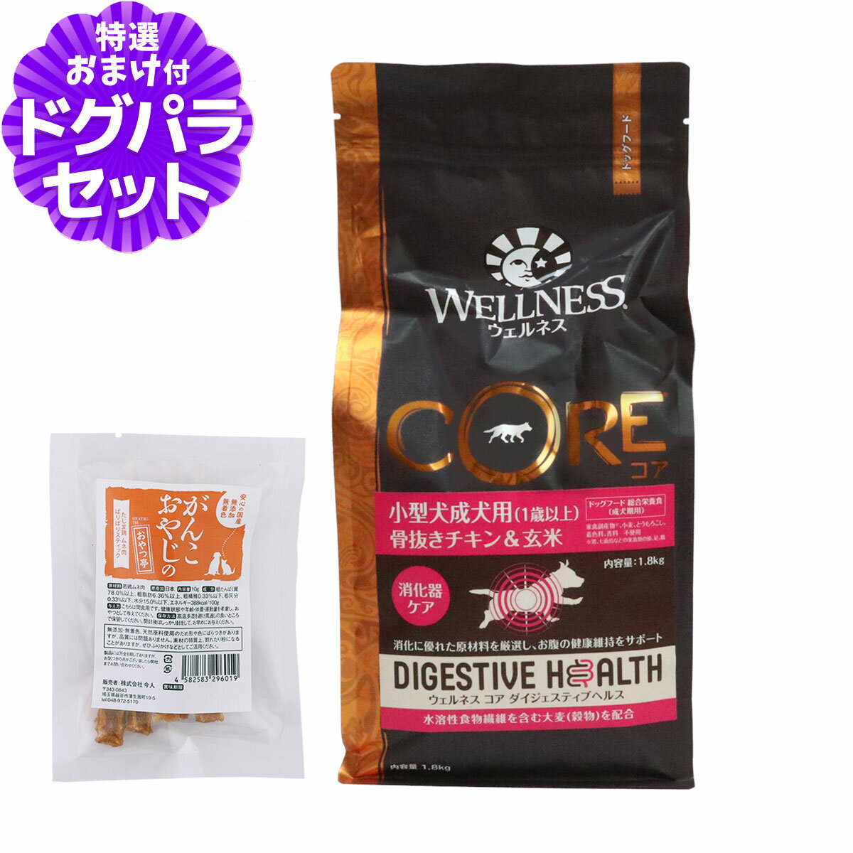 ウェルネス コア ダイジェスティブヘルス 小型犬成犬用 (1歳以上)骨抜きチキン&玄米 1.8kg+国産たじま鶏ジャーキー(小サイズ) 4,928 円