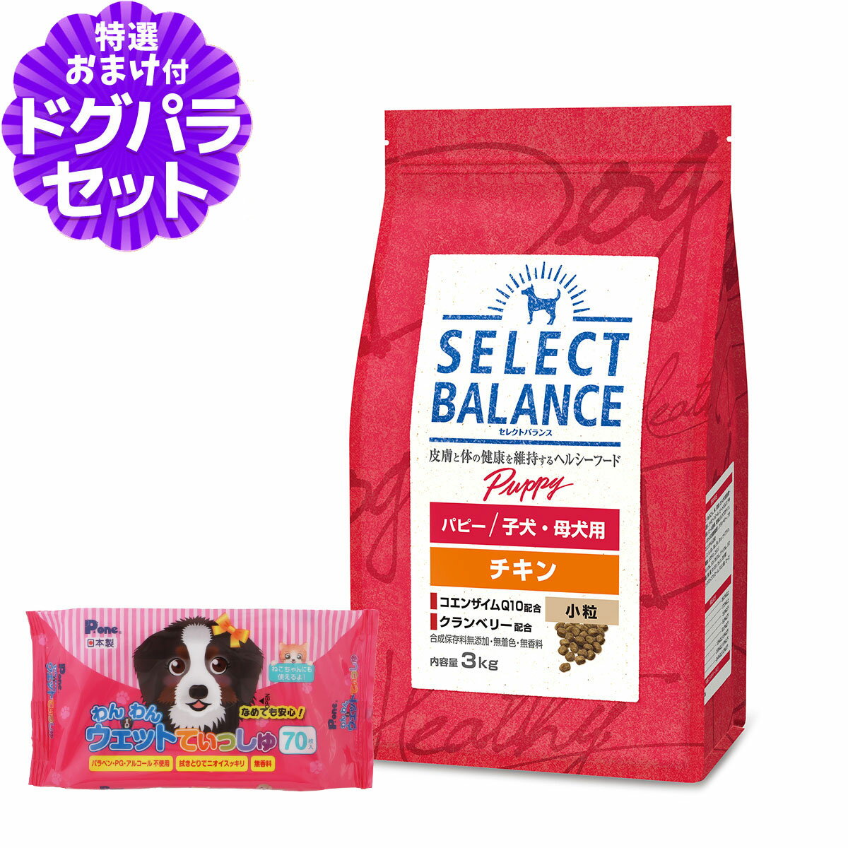 セレクトバランス パピー チキン小粒 3kg+わんわんウエットてぃっしゅ 1個 5,610 円