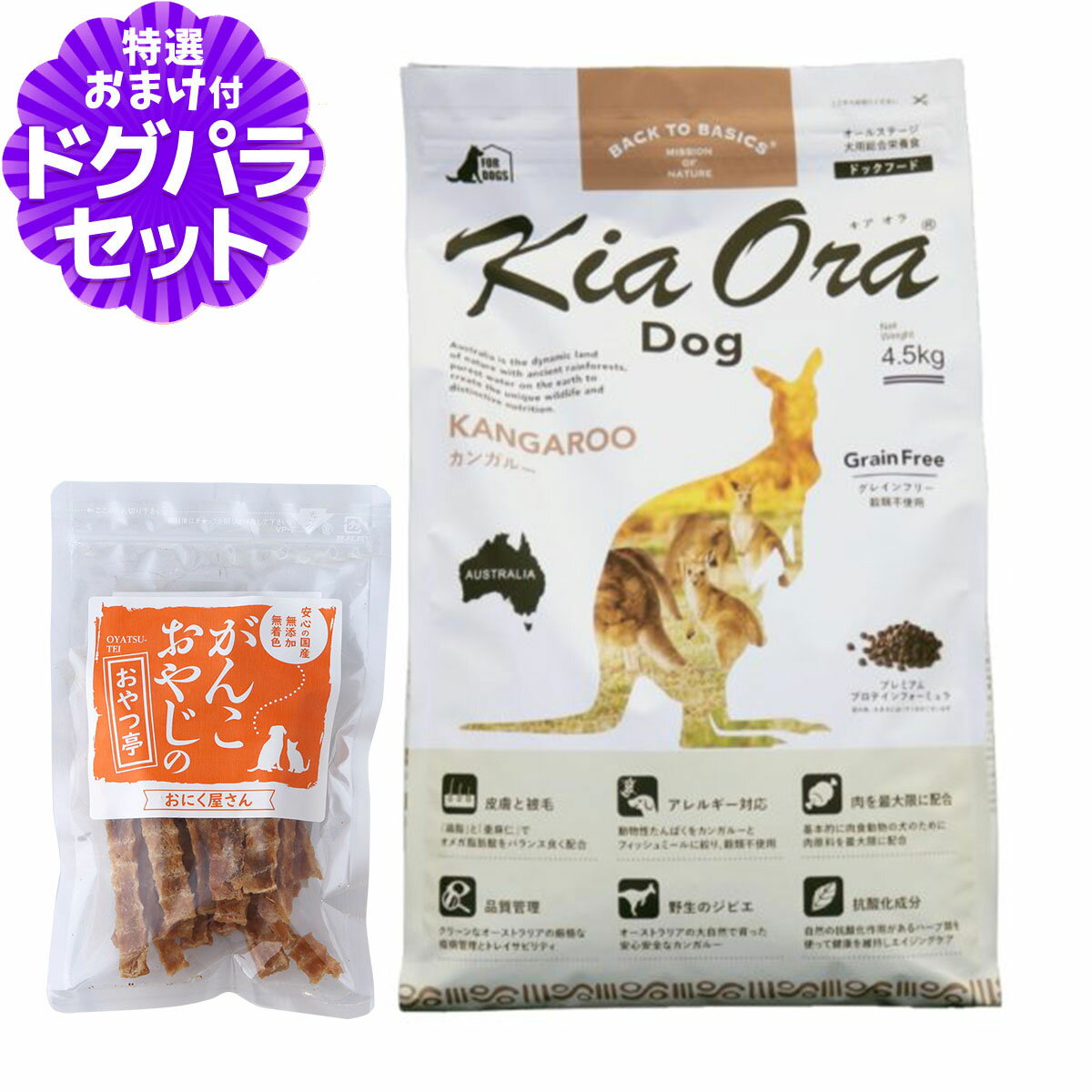 KiaOra DOG カンガルーの解説 犬は基本的に肉食動物で、野生の時代からその身体構造(歯・顎)、生理機能(胃・腸)はほとんど変わっていません。 獲物を丸ごと引き裂き飲み込むのに適した鋭い歯と強い顎を持ち、強い酸性の胃はお肉や骨を溶かしてしまう力があります。 KiaOraは、犬の体が自然に求める栄養を十分に摂取できるように、お肉をできるだけ多く配合しました。 消化吸収性に優れたお肉を多く配合することで、消化率を高め糞便の量を軽減します。 また、良質の動物性たんぱくをふんだんに使用し健康を維持することで、たくましい筋肉と骨格を守ります。 KiaOra DOG カンガルーの詳細 対象 オールステージ カンガルーについて オーストラリアの大自然で育った野生の「カンガルー」は、低脂肪、高タンパク、低コレステロールです。 KiaOraが使用するカンガルーは、体にやさしい赤身の健康食肉で、ルーミートと呼ばれ、最近ではベニソンに代わる新奇たんぱく源として注目されています。 ・限りなく広大な自然が続くオーストラリアは、野生動物が豊かに育つ世界有数の自然大国です。 年間を通じて太陽と雨に恵まれ、自然の草を食べてのびのびと育ったカンガルーは、オーストラリア特有のジビエで高たんぱく低脂肪のヘルシーなお肉です。 ・カンガルー肉は、食肉の中で最も低脂肪・低コレステロール・低カロリー。 そして野生でたくさん運動して育ったお肉だから、筋肉が発達した良質たんぱくと言えます。 ・KiaOraに含まれる植物性原料は、フードの成形に必要な最低限の種類と量に絞って使用されています。 ・穀類を使用せず、動物性たんぱく源を「単一肉原料+ドライフィッシュ」に絞って、食物アレルギーに配慮しています。 ・天然の抗酸化作用があるハーブ類(ローズマリー、グリーンティ、スペアミント)を配合して健康を維持することにより、免疫力を保ちます。 ・「鶏脂」と「亜麻仁」のオメガ3&6脂肪酸をバランス良く配合することで、健康維持により美しい皮膚と被毛を保ちます。 その他 直射日光の当たらない、湿気の少ない涼しいところに保管してください。 また、開封後はしっかりと密封して、約1ヶ月程度で使いきっていただくことをお奨めします。 ※当店の商品は全て正規品です。 安心してお買い求めください。 ■パッケージ・内容成分などは予告なく変更になることがございます。 ご了承くださいませ。 犬/ドッグ/フード/ドック/全年齢/パピー/子犬/仔犬/アダルト/成犬/高齢犬/シニア/キアオラ/KiaOra/アレルギー対応/穀物不使用/グレインフリー/ペット原材料 カンガルー生肉、ドライフィッシュ、えんどう豆、タピオカスターチ、全粒亜麻仁、鶏脂、天然フレーバー、ビネガー、ミネラル類(塩化ナトリウム、炭酸カルシウム、硫酸亜鉛、硫酸鉄、硫酸銅、硫酸マンガン、亜セレン酸ナトリウム、硫酸コバルト、ヨウ素酸カルシウム)、酸化防止剤(クエン酸、天然ミックストコフェロール、ローズマリー抽出物、グリーンティ抽出物、スペアミント抽出物)、ビタミン類(塩化コリン、ビタミンEサプリメント、ナイアシン(ビタミンB3)、パントテン酸カルシウム(ビタミンB5)、リボフラビンサプリメント、チアミン硝酸塩(ビタミンB1)、ビタミンB12サプリメント、ビタミンAサプリメント、塩酸ピリドキシン(ビタミンB6)、葉酸(ビタミンB9)、ビタミンD3サプリメント)、タウリン 保証成分 たんぱく質 29.0%以上、脂質 17.0%以上、粗繊維 4.0% 以下、灰分 10.0% 以下、水分 10.0% 以下 カロリー 約365kcal/100g 原産国 ニュージーランド 対象年齢 オールステージ 給与量目安 ご注意 ※直射日光の当たらない、湿気の少ない涼しいところに保管してください。 また、開封後はしっかりと密封して、約1ヶ月程度で使いきっていただくことをお奨めします。 商品についてのお知らせ ※パッケージ・内容成分などは予告なく変更になることがございます。 おすすめポイント キアオラ KiaOra ドッグフード カンガルー 4.5kg+国産たじま鶏ジャーキー40g 犬 ドック グレインフリー 穀物不使用 全年齢 17,600 円