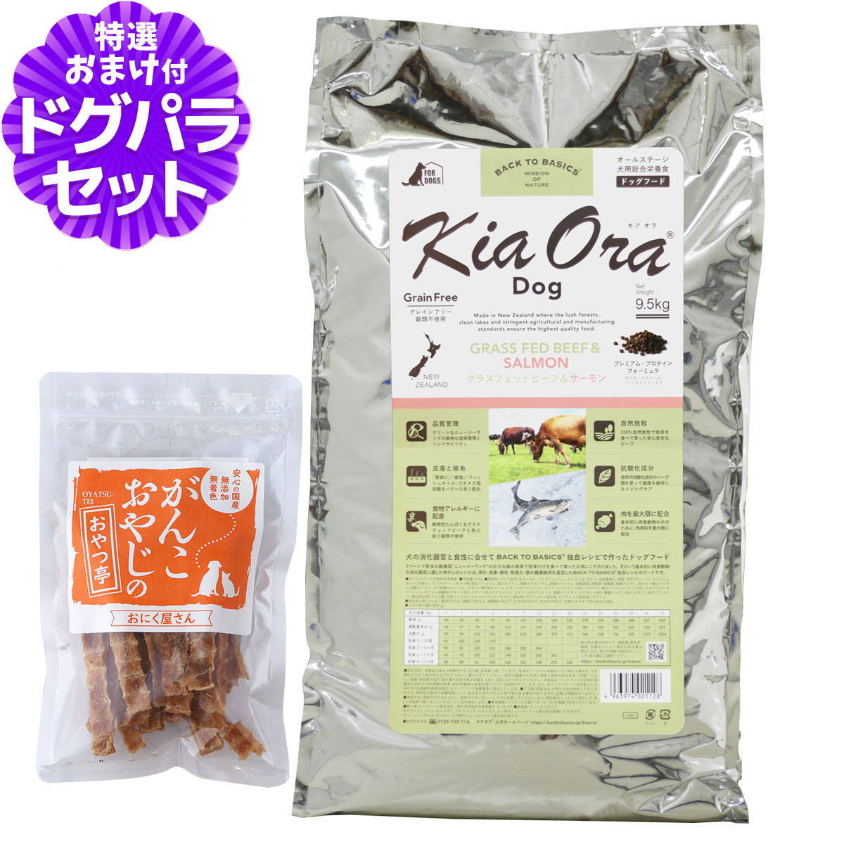 KiaOra DOG グラスフェッドビーフ&サーモンの解説 犬は基本的に肉食動物で、野生の時代からその身体構造(歯・顎)、生理機能(胃・腸)はほとんど変わっていません。 獲物を丸ごと引き裂き飲み込むのに適した鋭い歯と強い顎を持ち、強い酸性の胃はお肉や骨を溶かしてしまう力があります。 KiaOraは、犬の体が自然に求める栄養を十分に摂取できるように、お肉をできるだけ多く配合しました。 消化吸収性に優れたお肉を多く配合することで、消化率を高め糞便の量を軽減します。 また、良質の動物性たんぱくをふんだんに使用し健康を維持することで、たくましい筋肉と骨格を守ります。 KiaOra DOG グラスフェッドビーフ&サーモンの詳細 対象 オールステージ グラスフェッドビーフ&サーモンについて 牧草育ちのグラスフェッドビーフは、良質な赤身肉で、穀類育ちのグレインフェッドビーフと比べて、オメガ脂肪酸が高く、ビタミンも豊富です。 KiaOraが使用するグラスフェッドビーフは、自然放牧で育った天然の滋味豊かなお肉です。 ・KiaOraが使用するニュージーランド産のグラスフェッドビーフは、一年を通じて屋外で自然放牧で牧草を食べて育っています。 牛舎で育ったビーフは使用しません。 また、トレイサビリティ(追跡可能性)が徹底した牧場のみと契約し、自然豊かで清潔な環境で育ったビーフです。 ・グラスフェッドビーフは、グレインフェッドビーフと比べて、低脂肪、低コレステロールで飽和脂肪酸の量も少ないのが特徴です。 ・牧草飼育のグラスフェッドビーフは、豊富な栄養素を含む良質な赤身肉です。 鉄分は、犬の体に酸素を運ぶのにも極めて重要です。 また、グラスフェッドビーフには、牛舎で穀物の餌を食べて育ったグレインフェッドビーフと比べて、ビタミンE、ビタミンC、βカロチン、共役リノール酸が豊富に含まれています。 ・グラスフェッドビーフには、健康な食事に欠かせないオメガ3脂肪酸とオメガ6脂肪酸が豊富に配合されています。 ・KiaOra製品にサーモンを選択したのは、その優れた栄養価にあります。 サーモンには良質なたんぱく質や脂肪酸が豊富に含まれており、そのたんぱく質のアミノ酸スコアが100点満点、消化率99%です。 ・KiaOraに含まれる植物性原料は、フードの成形に必要な最低限の種類と量に絞って使用されています。 その他 直射日光の当たらない、湿気の少ない涼しいところに保管してください。 また、開封後はしっかりと密封して、約1ヶ月程度で使いきっていただくことをお奨めします。 ※当店の商品は全て正規品です。 安心してお買い求めください。 ■パッケージ・内容成分などは予告なく変更になることがございます。 ご了承くださいませ。 犬/ドッグ/フード/ドック/全年齢/パピー/子犬/仔犬/アダルト/成犬/高齢犬/シニア/キアオラ/KiaOra/牛/鮭/アレルギー対応/穀物不使用/グレインフリー/ペット原材料 ビーフ生肉、生サーモン、ドライフィッシュ、えんどう豆、ポテト、全粒亜麻仁、鶏脂、天然フレーバー、フィッシュオイル、乾燥ビーフ、ビネガー、ミネラル類(塩化ナトリウム、塩化カリウム、硫酸マグネシウム、炭酸カルシウム、硫酸亜鉛、硫酸鉄、硫酸銅、硫酸マンガン、亜セレン酸ナトリウム、硫酸コバルト、ヨウ素酸カルシウム)、ビタミン類(塩化コリン、ビタミンEサプリメント、ナイアシン(ビタミンB3)、パントテン酸カルシウム(ビタミンB5)、リボフラビンサプリメント、チアミン硝酸塩(ビタミンB1)、ビタミンB12サプリメント、ビタミンAサプリメント、塩酸ピリドキシン(ビタミンB6)、葉酸(ビタミンB9)、ビタミンD3サプリメント)、酸化防止剤(クエン酸、天然ミックストコフェロール、ローズマリー抽出物、グリーンティ抽出物、スペアミント抽出物)、タウリン ※ドライフィッシュ:キンメダイ、ブルーコッド、マルスズキ、タイ等のニュージーランド産の魚を乾燥したものです。 ※フィッシュオイル:サーモン、ホキ等のニュージーランド産の魚の油です。 保証成分 たんぱく質 30.0%以上、脂質 17.0%以上、粗繊維 4.0% 以下、灰分 10.0% 以下、水分 10.0% 以下 カロリー 約381.9kcal/100g 原産国 ニュージーランド 対象年齢 オールステージ 給与量目安 ご注意 ※直射日光の当たらない、湿気の少ない涼しいところに保管してください。 また、開封後はしっかりと密封して、約1ヶ月程度で使いきっていただくことをお奨めします。 商品についてのお知らせ ※パッケージ・内容成分などは予告なく変更になることがございます。 おすすめポイント キアオラ KiaOra ドッグフード グラスフェッドビーフ&サーモン 9.5kg+国産たじま鶏ジャーキー40g 犬 ドック グレインフリー 穀物不使用 全年齢 23,650 円