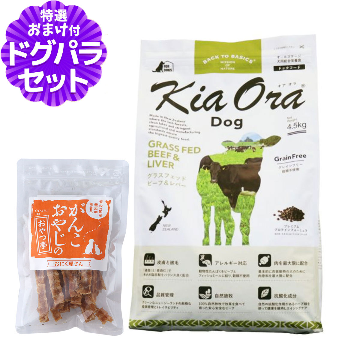 KiaOra DOG グラスフェッドビーフ&レバーの解説 犬は基本的に肉食動物で、野生の時代からその身体構造(歯・顎)、生理機能(胃・腸)はほとんど変わっていません。 獲物を丸ごと引き裂き飲み込むのに適した鋭い歯と強い顎を持ち、強い酸性の胃はお肉や骨を溶かしてしまう力があります。 KiaOraは、犬の体が自然に求める栄養を十分に摂取できるように、お肉をできるだけ多く配合しました。 消化吸収性に優れたお肉を多く配合することで、消化率を高め糞便の量を軽減します。 また、良質の動物性たんぱくをふんだんに使用し健康を維持することで、たくましい筋肉と骨格を守ります。 KiaOra DOG グラスフェッドビーフ&レバーの詳細 対象 オールステージ グラスフェッドビーフ&レバーについて 牧草育ちのグラスフェッドビーフは、良質な赤身肉で、穀類育ちのグレインフェッドビーフと比べて、オメガ脂肪酸が高く、ビタミンも豊富です。 KiaOraが使用するグラスフェッドビーフは、自然放牧で育った天然の滋味豊かなお肉です。 ・グラスフェッドビーフ&レバーは、レバーを配合して、お肉の栄養バランスを考慮しています。 また、レバーの配合により嗜好性がアップしています。 ・ポテトを配合していないため、ポテトにアレルギーがあるワンちゃんにもおススメします。 ・KiaOraに含まれる植物性原料は、フードの成形に必要な最低限の種類と量に絞って使用されています。 ・穀類を使用せず、動物性たんぱく源を「単一肉原料+ドライフィッシュ」に絞って、食物アレルギーに配慮しています。 ・天然の抗酸化作用があるハーブ類(ローズマリー、グリーンティ、スペアミント)を配合して健康を維持することにより、免疫力を保ちます。 ・「鶏脂」と「亜麻仁」のオメガ3&6脂肪酸をバランス良く配合することで、健康維持により美しい皮膚と被毛を保ちます。 その他 直射日光の当たらない、湿気の少ない涼しいところに保管してください。 また、開封後はしっかりと密封して、約1ヶ月程度で使いきっていただくことをお奨めします。 ※当店の商品は全て正規品です。 安心してお買い求めください。 ■パッケージ・内容成分などは予告なく変更になることがございます。 ご了承くださいませ。 犬/ドッグ/フード/ドック/全年齢/パピー/子犬/仔犬/アダルト/成犬/高齢犬/シニア/キアオラ/KiaOra/牛/アレルギー対応/穀物不使用/グレインフリー/ペット原材料 ビーフ生肉、えんどう豆、ドライフィッシュ、タピオカスターチ、全粒亜麻仁、ビーフレバー、醸造酵母、鶏脂、天然フレーバー、乾燥ビーフ、ビネガー、ミネラル類(塩化カリウム、塩化ナトリウム、炭酸カルシウム、硫酸亜鉛、硫酸鉄、硫酸銅、硫酸マンガン、亜セレン酸ナトリウム、硫酸コバルト、ヨウ素酸カルシウム)、酸化防止剤(クエン酸、天然ミックストコフェロール、ローズマリー抽出物、グリーンティ抽出物、スペアミント抽出物)、ビタミン類(塩化コリン、ビタミンEサプリメント、ナイアシン(ビタミンB3)、パントテン酸カルシウム(ビタミンB5)、リボフラビンサプリメント、チアミン硝酸塩(ビタミンB1)、ビタミンB12サプリメント、ビタミンAサプリメント、塩酸ピリドキシン(ビタミンB6)、葉酸(ビタミンB9)、ビタミンD3サプリメント)、タウリン 保証成分 たんぱく質 28.0%以上、脂質 17.0%以上、粗繊維 4.0% 以下、灰分 10.0% 以下、水分 10.0% 以下 カロリー 約364kcal/100g 原産国 ニュージーランド 対象年齢 オールステージ 給与量目安 ご注意 ※直射日光の当たらない、湿気の少ない涼しいところに保管してください。 また、開封後はしっかりと密封して、約1ヶ月程度で使いきっていただくことをお奨めします。 商品についてのお知らせ ※パッケージ・内容成分などは予告なく変更になることがございます。 おすすめポイント キアオラ KiaOra ドッグフード グラスフェッドビーフ&レバー 4.5kg+国産たじま鶏ジャーキー40g 犬 ドック グレインフリー 穀物不使用 全年齢 14,300 円