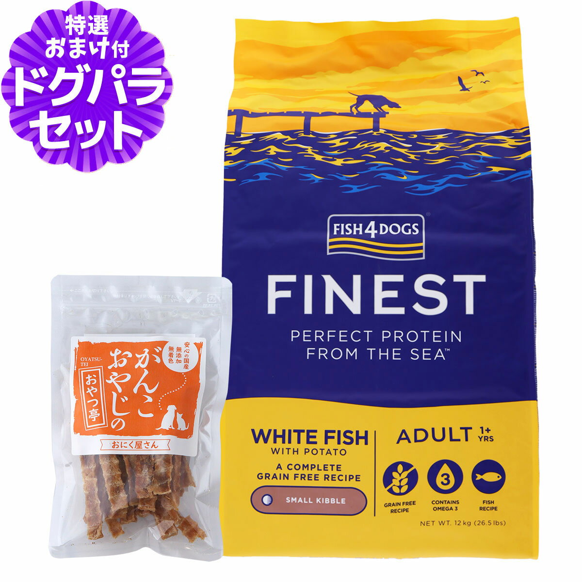 フィッシュ4ドッグ ファイネストの解説 アレルギーに悩むすべてのわんちゃんへ。 新鮮な魚を主原料とし、オメガ3脂肪酸 DHAとEPAが豊富に含まれ関節ケアや皮膚被毛へのサポートなど多様な効果が期待できます。 シンプルなレシピで嗜好性に優れ、必須栄養成分配合により最適な栄養バランスを保ちます。 さらに、グレインフリー、天然素材使用、合成保存料・合成着色料不使用、低GIといったペットの健康のために考えられる事をすべて込めたフードです。 フィッシュ4ドッグ ファイネスト オーシャンホワイトフィッシュの詳細 対象 成犬からシニア犬 オーシャンホワイトフィッシュについて 白身魚が主原料、お腹が弱い仔におすすめ。 栄養価が高く消化吸収に優れたオーシャンホワイトフィッシュを主原料とした成犬からシニア犬までご使用いただけるコンプリートドッグフードです。 ・魚は飽和脂肪酸が少なく、高タンパク低糖分で消化吸収に優れます。 ・魚由来のオメガ3およびオメガ6をバランスよく豊富に摂取することが可能 ・穀物アレルギーに考慮し、ポテトとエンドウ(低GI)を使用 ・魚の身と小骨だけを使用 ・ポテトとエンドウを使用することにより、バランスの取れたグリセミック指数(=GI値)を供給でき、エネルギー吸収が非常に効率的 【低GI値の炭水化物を配合する利点】 ※体重管理するのを助けます。 ※インスリンへの体の反応を良くします。 ※糖尿病管理を改善します。 ※心臓病リスクを軽減します。 ※血中コレステロール値を改善します。 ※スタミナを長くします。 その他 自然素材を使用しているため、原材料の漁獲時期により色、形、香りが若干異なる場合がございますが、品質に問題ありません。 直射日光・高温多湿を避け、冷暗所で保管してください。 開封後は鮮度が落ちる前になるべく早めに与えてください。 ※当店の商品は全て正規品です。 安心してお買い求めください。 ■パッケージ・内容成分などは予告なく変更になることがございます。 ご了承くださいませ。 犬/ドッグ/フード/ドック/穀物不使用/グレインフリー/穀物アレルギー/シンプル/白身魚/成犬/アダルト/高齢犬/シニア/低GI/オメガ/FISH4DOGS原材料 オーシャンホワイトフィッシュ:27.25%、ポテト:22.7%、エンドウ:20.76%、サーモンミール:12.37%、サーモンオイル:8.65%、ビートファイバー:4.01%、ビール酵母:2.06%、サンフラワーオイル:1.3%、ビタミン&ミネラル類:0.86%、トコフェロール抽出物(酸化防止剤):0.04% 保証成分 粗たんぱく質:23%以上、粗脂肪:10%以上、粗繊維:4.25%以下、粗灰分:8.5%以下、水分:10%以下、オメガ3脂肪酸:2.3%、オメガ6脂肪酸:4.2% カロリー 367.3kcal/100g 原産国 ノルウェー 対象年齢 成犬からシニア犬 給与量目安 ※上記給与量を目安に愛犬の体重及び健康状態を考慮して与えてください。 ※いつでも新鮮な水を飲めるようにご用意ください。 給与回数は1〜2回が一般的です。 ※給与量は生活環境や犬種、運動量、気温などにより異なります。 ご注意 自然素材を使用しているため、原材料の漁獲時期により色、形、香りが若干異なる場合がございますが、品質に問題ありません。 直射日光・高温多湿を避け、冷暗所で保管してください。 開封後は鮮度が落ちる前になるべく早めに与えてください。 商品についてのお知らせ おすすめポイント フィッシュ4ドッグ ファイネスト オーシャンホワイトフィッシュ 小粒 12kg+国産たじま鶏ジャーキー40g 犬 ドッグフード 21,780 円