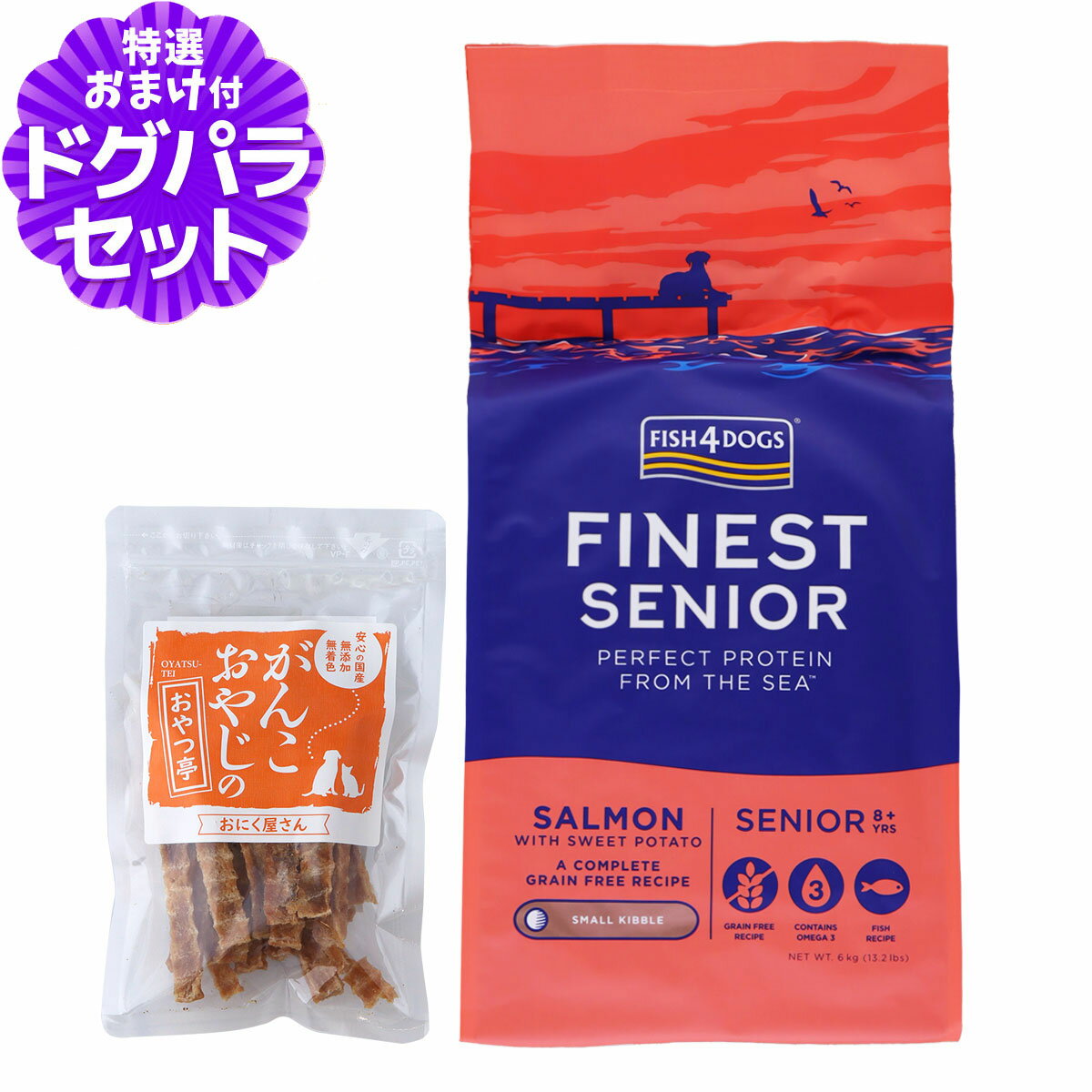 フィッシュ4ドッグ ファイネストの解説 アレルギーに悩むすべてのわんちゃんへ。 新鮮な魚を主原料とし、オメガ3脂肪酸 DHAとEPAが豊富に含まれ関節ケアや皮膚被毛へのサポートなど多様な効果が期待できます。 シンプルなレシピで嗜好性に優れ、必須栄養成分配合により最適な栄養バランスを保ちます。 さらに、グレインフリー、天然素材使用、合成保存料・合成着色料不使用、低GIといったペットの健康のために考えられる事をすべて込めたフードです。 フィッシュ4ドッグ ファイネスト サーモン シニアの詳細 対象 高齢犬 サーモン シニアについて サーモンをベース に、免疫力向上も期待できるシニア(老犬)向けフード。 アスタキサンチン豊富なサーモンを原材料に、プレバイオティクスを加えた消化吸収に優れるよりシニア(老犬)向けコンプリートドッグフードです。 最高品質の養殖サーモンを原材料に使用。 原材料の飼育にはホルモン剤や抗生物質成長促進剤、遺伝子組み換え成分は一切使用しておりません。 また、汚染環境や飼育コントロールを厳重に管理し、非常に高品質なサーモンを使用しております。 ・魚は飽和脂肪酸が少なく、高タンパク低糖分で消化吸収に優れます。 ・魚由来のオメガ3およびオメガ6をバランスよく豊富に摂取することが可能 ・βグルカンを配合 ・穀物アレルギーに考慮し、抗酸化作用に優れたスイートポテトを使用 ・魚の身と小骨だけを使用 ・ポテトとエンドウを使用することにより、バランスの取れたグリセミック指数(=GI値)を供給でき、エネルギー吸収が非常に効率的 【低GI値の炭水化物を配合する利点】 ※体重管理するのを助けます。 ※インスリンへの体の反応を良くします。 ※糖尿病管理を改善します。 ※心臓病リスクを軽減します。 ※血中コレステロール値を改善します。 ※スタミナを長くします。 その他 自然素材を使用しているため、原材料の漁獲時期により色、形、香りが若干異なる場合がございますが、品質に問題ありません。 直射日光・高温多湿を避け、冷暗所で保管してください。 開封後は鮮度が落ちる前になるべく早めに与えてください。 ※当店の商品は全て正規品です。 安心してお買い求めください。 ■パッケージ・内容成分などは予告なく変更になることがございます。 ご了承くださいませ。 犬/ドッグ/フード/ドック/穀物不使用/グレインフリー/穀物アレルギー/シンプル/単一たんぱく/シニア/老犬/高齢犬/鮭/低GI/オメガ/FISH4DOGS原材料 サーモン:27.5%、スイートポテト:26.09%、エンドウ:17.3%、サーモンミール:13%、ビートファイバー:6.8%、サーモンオイル:4.9%、ビール酵母:2.15%、サンフラワーオイル:0.86%、ビタミン&ミネラル類:0.86%、クラフトオリゴ糖:0.4%、β-1,3/1,6-グルカン:0.1%、トコフェロール抽出物(酸化防止剤):0.04% 保証成分 粗たんぱく質:23%以上、粗脂肪:8%以上、粗繊維:5.25%以下、粗灰分:8.5%以下、水分:10%以下、オメガ3脂肪酸:1.4%、オメガ6脂肪酸:1.88% カロリー 351.25kcal/100g 原産国 ノルウェー 対象年齢 高齢犬用 給与量目安 ※上記給与量を目安に愛犬の体重及び健康状態を考慮して与えてください。 ※いつでも新鮮な水を飲めるようにご用意ください。 給与回数は1〜2回が一般的です。 ※給与量は生活環境や犬種、運動量、気温などにより異なります。 ご注意 自然素材を使用しているため、原材料の漁獲時期により色、形、香りが若干異なる場合がございますが、品質に問題ありません。 直射日光・高温多湿を避け、冷暗所で保管してください。 開封後は鮮度が落ちる前になるべく早めに与えてください。 商品についてのお知らせ おすすめポイント フィッシュ4ドッグ ファイネスト サーモン シニア 小粒 6kg+国産たじま鶏ジャーキー40g 犬 ドッグフード 13,750 円