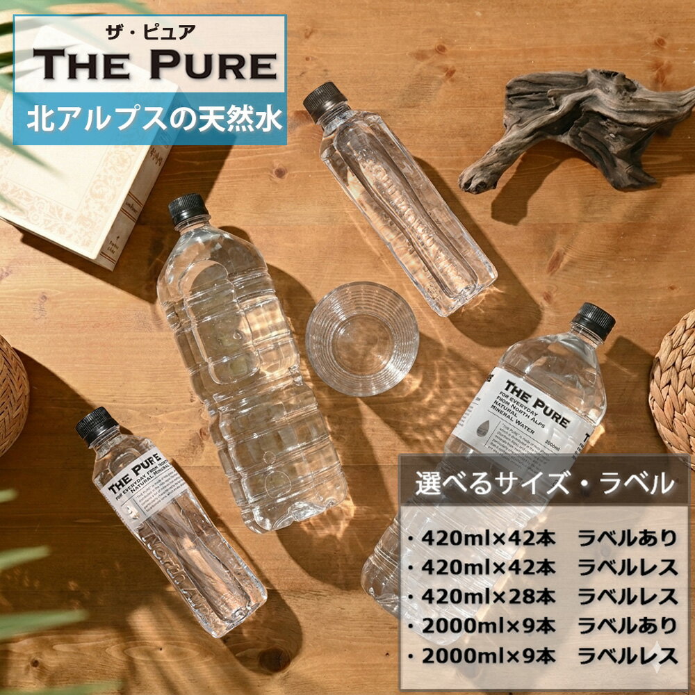 【 新規格28本登場 】 水 まとめ買い 天然水 THE PURE ザピュア 420ml×42本 2L×9本 ラベルあり・なし 420ml×28本 ラベルなし 追加 選べる 北アルプスの天然水 ラベルレス 軟水 国産 硝酸態窒素 亜硝酸態窒素 PFOS PFOA 検出限界以下 1,380 円