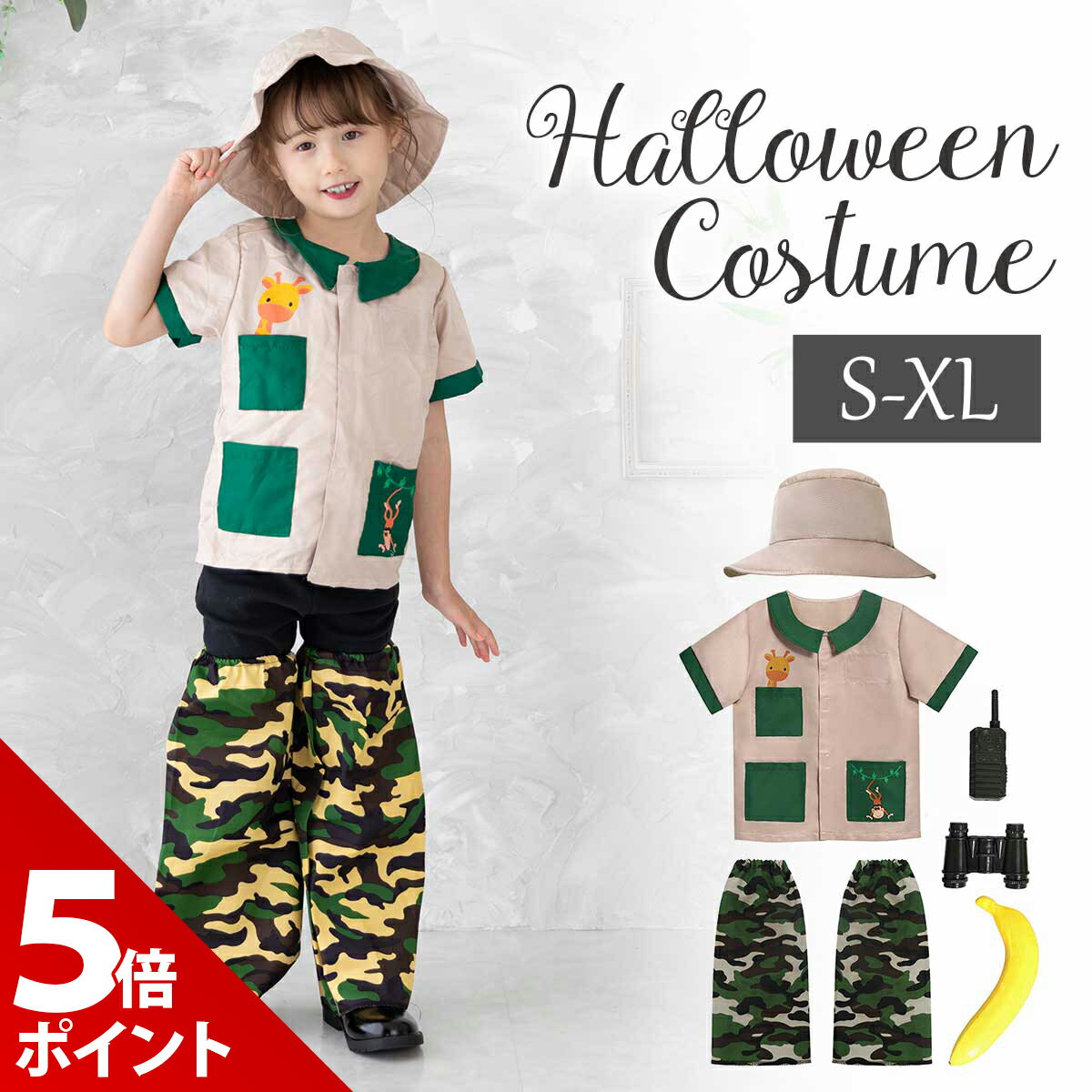 【サイズ選べる】探検家 衣装 子供 探検隊 コスプレ ハロウィン 仮装 冒険家 仮装 博士 コス 探検 コスチューム キッズ 迷彩 コス ミリタリー なりきり 発表会 イベント ・探検家になりきれる豪華なセットで、探検家気分を満喫できます。 ・高品質で肌触りの良い生地を使用し、長時間の着用でも快適に過ごせます。 ・男の子も女の子も楽しめる冒険心をくすぐるユニバーサルなデザインです。 ・選べるサイズでお子さまの体にフィットし、動きやすく快適な着用感を実現します。 ・学校や幼稚園の発表会、キャンプ、アウトドアイベントなど、特別なイベントで素敵な思い出を作れます。 ご購入から30日間はメーカー保証付きです。 メーカー希望小売価格はメーカーサイトに基づいて掲載していますe0923 ・探検家になりきれる豪華なセットで、探検家気分を満喫できます。 ・高品質で肌触りの良い生地を使用し、長時間の着用でも快適に過ごせます。 ・男の子も女の子も楽しめる冒険心をくすぐるユニバーサルなデザインです。 ・選べるサイズでお子さまの体にフィットし、動きやすく快適な着用感を実現します。 ・学校や幼稚園の発表会、キャンプ、アウトドアイベントなど、特別なイベントで素敵な思い出を作れます。 ■内容■ 探検家コスチューム6点セット (シャツ、レッグカバー、帽子、双眼鏡、トランシーバー、バナナ) ■サイズ(約)■ S:着丈41cm 胸囲71cm以内 適合身長105-115cm M:着丈46cm 胸囲74cm以内 適合身長115-125cm L:着丈50cm 胸囲80cm以内 適合身長125-135cm XL:着丈54cm 胸囲86cm以内 適合身長135-145cm レッグカバー:43cm 足回り19-36cm 帽子:頭囲58cm ※寸法は平置きにて計測し、1-3cm程度の誤差がある場合がございます。 ■素材■ ポリエステル ※商品写真はできる限り実物の色に近づけるよう調整しておりますが、お客様のお使いのモニター設定、お部屋の照明等により実際の商品と色味が異なる場合がございます。 恐れ入りますが色味が理由によるご返品はお受けしておりませんので、予めご了承ください。 ご注文前にご確認下さい ●よくあるご質問● 【マラソン限定★P+5倍!】【サイズ選べる】探検家 衣装 子供 探検隊 コスプレ ハロウィン 仮装 冒険家 仮装 博士 コス 探検 コスチューム キッズ 迷彩 コス ミリタリー なりきり 発表会 イベント 2,780 円