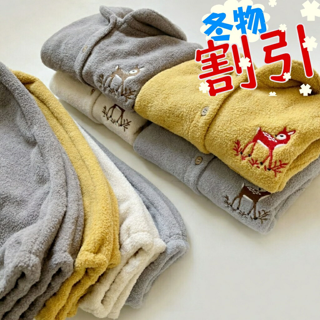キッズ もこもこボア ルームウェア上下セット(前開き・ポケット付き)80〜120cm ふわふわのボアに包まれて、冬のおうち時間がもっとごきげんに。 前開きボタンでお着替えしやすい、あったかルームウェアの上下セットです。 北欧っぽい雰囲気の“しかさん刺繍”がさりげなく可愛くて、寝るときはもちろん、朝の支度やお風呂上がりの冷え対策にも大活躍。 ■ 商品の特徴 ふわもこボア素材:厚手であたたかく、寒い季節の防寒にぴったり。 触り心地もやさしくてリラックス感◎ 前開きボタン仕様:かぶりが苦手なお子さまでも着脱しやすく、お着替えや寝かしつけ時もスムーズ 便利なポケット付き:トップス右サイドにポケット付きで、ティッシュや小物をちょこんと入れられます ウエスト総ゴム:お腹まわりがラクで締め付けにくいので、寝返りが多い子にもおすすめ 上下別でも着回しOK:トップスだけ・パンツだけで手持ちの服と合わせやすく、おうちでもちょっとした外出でも使えます 可愛い鹿の刺繍デザイン:ほっこり北欧風のアクセントで、ギフトにも選ばれやすいデザインです ■ カラー ベージュ | イェロー | グレー | ブルーグレー ■ サイズ 80cm | 90cm | 100cm | 110cm | 120cm ■ 仕様 サイズ80〜120cm 仕様前開きボタン / トップス右ポケット / パンツウエスト総ゴム 生産国中国 お手入れ家庭洗濯可(漂白剤不可・タンブル乾燥不可・日陰つり干し推奨・ドライクリーニング不可) 季節秋・冬 タイプキッズ ルームウェア / パジャマ 上下セット(長袖) 素材ポリエステル100% ■ おすすめシーン 冬のパジャマ・寝巻きに 朝の冷え込む時間の部屋着に お風呂上がりの湯冷め対策に 幼稚園・保育園のお泊まり行事やお昼寝用に 帰宅後のリラックスタイムに 年末年始の帰省や旅行の持ち歩き用に 出産祝い・誕生日・クリスマスなどのプレゼントに きょうだいで色違いコーデに ※サイズは平置き採寸のため、多少の誤差が生じる場合がございます。 ※モニターや照明環境により、実物と色味・素材感が多少異なる場合がございます。 ※洗濯時は漂白剤・タンブル乾燥は避け、日陰でつり干ししてください。 キッズ・ボアパジャマ ふわふわボア素材を使用した、あったか上下セット♪ 触り心地抜群なふわふわのあたたかボア素材がポイントです。 ・ボタン付きの前開き仕様、脱着しやすい。 ・トップス右サイドに便利なポケット付き、小物収納便利。 ・ボア素材で肌触りがよく、ふんわり柔らかな着心地、肌が敏感な人にもオススメです。 ・可愛い鹿の刺?が付き、子供に喜ばれている。 ・パンツのウエストは総ゴムでゆったりとした履き心地。 厚手の生地で、寒い冬の夜に大活躍のフワフワ感モコモコ感が暖かくて気持ちの良いパジャマです。 冬寒い時はリラックスタイムもあったか、ゆったり。 上下セットで着るだけでなく、それぞれ単独でも着まわしでき、お手持ちの服とも簡単二組み合わせられます。 お部屋で着用いただけますし、外出や普段着にも最適。 自分の子供用にはもちろん、出産祝い、誕生日、お食い始め、子供の日などのプレゼントにもお勧めいたします。 サイズ サイズ 部位 肩幅 袖丈 着丈 ズボン丈 80 32cm 36cm 34cm 42cm 90 33cm 37cm 35cm 46cm 100 35cm 42cm 38cm 49cm 110 38cm 45cm 43cm 56cm 120 40cm 49cm 46cm 60cm 素材 ポリエステル100% サイズ 80-120cm カラー 全4色 生産国 中国 ご注意 ご家庭でのお洗濯可能。 塩素系及び酸素系漂白剤の使用禁止。 タンブル乾燥禁止。 日陰のつり干しがよい。 ドライクリーニング禁止。 商品写真はできる限り実物の色に近いようにしておりますが、パソコンの画質や光線環境により実際の商品と色味・素材感が多少異なる場合がございますので、予めご了承ください。 ★商品でお気づきの点がございましたらレビュー記載前に当店までお問い合わせください。 こちらもおすすめ♪ 【タイムセール20%OFF!24日0時まで】 ルームウェア ベビー キッズ パジャマ セットアップ 長袖 男の子 女の子 子供服 フランネル ボア ルーム着 寝巻き 上下セット 暖か 冬 柔らか ナイトウェア 可愛い ポケット付き 幼稚園 保育園 ふわふわ もこもこ 北欧風 前開き 防寒 4,455 円