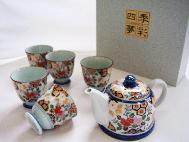 ギフト対応 美味しいご飯、美味しいお茶は美しい器で美味しさ倍増! お茶碗と湯飲みは柄が5パターンあり、 気分を変えて楽しめます♪ 贈り物・ギフトに最適です。 日頃お世話になっている方へのプレゼントに♪ <セット内容> ポット…1点 湯飲み…5点 合計……6点 <サイズ> ポット径11cm×高さ10cm 湯飲み径8cm×高さ7.5cm 日本製、化粧箱入り 主な商品の特徴・用途 内祝、結婚式等の引き出物、快気祝い、新築祝い、初節句、結婚記念日、出産祝い、結婚祝、入学祝い、ご長寿祝い、還暦祝いなどお祝いのギフト、母の日・父の日の贈り物、敬老の日の贈り物、お中元やお歳暮やそのお返し、引越祝い、引っ越しの御挨拶、仏事、香典返し、法要、法事、志、慶弔時の返礼品、記念品、粗品、景品、コンペ、お年賀、贈答品、外国向けのお土産、海外向け日本土産、日本みやげ、外国人へのおみやげ、海外出張時の相手先へのプレゼントやホームステイ先のホストファミリーへの御挨拶に最適♪ プレゼント包装も別料金で承ります。 佐賀県有田の陶工達により作り出された、 艶やかで美しい日本の名品有田焼。 中でも江戸期に伊万里港から搬出されたものを古伊万里と呼び、 瀬戸物、陶器の中でもその美しさは国内外から絶賛され、今に続いています。