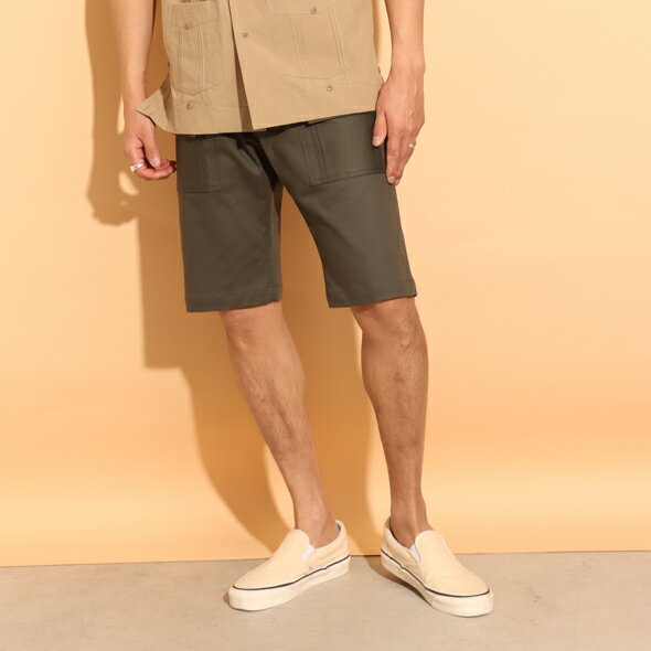 [ブランド紹介] 【ROTAR/ローター】「楽しむ」、「好き」をコンセプトに進化し続けるブランド。 2000年の夏START。 スケートボード、モーターサイクルなどを中心に、 他には無いポップな色使いやユニークなアイテムを展開。 2013年からは「酒、音楽、煙草、UMA」といった、男の浪漫をシリーズに加え、 ユーモアな発想でデザインされるアイテムが特徴。 ROTAR ( ローター ) / Stretch Bush Shorts ▼商品説明▼●model:H182 B84 W77 H89 着用サイズ:M表面に縦畝の入ったストレッチ素材を使用したブッシュタイプのショートパンツ。 サマーコールのような味わいf深い表面が特徴で、ストレッチ入りで動きやすさも考慮したデイリーに使いやすい生地感です。 やや細身でスッキリしたシルエットに仕上げ、嫌味なく履きやすい膝の丈感もポイントの一つ。 シンプルながらポケットのディテールなど、ワークのデザインを踏襲し、ウエストや、各所ポケットには Roオリジナルのドットボタンを使用した細部にも拘ったショートパンツです。 素材 = C95% Pu5%[Size(cm)]ウエスト/ヒップ/股上/股下/渡り幅/裾幅[M]86/104/23/28/32.5/23[L]91/109/24/29/33.25/24.25[XL]96/114/25/30/34/25.5※商品写真はできる限り現品を再現するように心がけていますが、ご利用のモニターにより差異が生じます。 あらかじめご了承くださいませ。