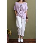 ゆったりシルエットのコットンパンツパンツ丈98ヒップ106腿回り60コットン70%、リネン30% |