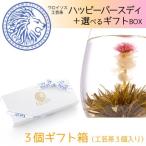 お誕生日のお祝いに 工芸茶ハッピーバースディ+お好きな工芸茶をふたつ選べる3個入りギフトBOXです。 セットのお茶は20種類からおふたつお選びください。