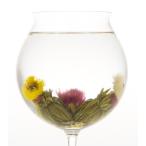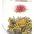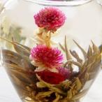 お茶の中から千日紅とジャスミンが現れます。 熱湯をそそぐと順番にポンポンポンと順番に咲いて癒されますよ![中国工芸茶] |