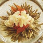ジャスミン花と菊の花の工芸茶 香りをつける工程により、茶葉が香りを吸収してお茶の味わいを深めています。 ■まるでキャンディのように工芸茶1個毎に個別包装されていますので、清潔・安心です。 もちろんプレゼントにも最適です。 お湯を注ぐと茶葉が開いて、中から美しいオレンジ色の菊花が現れます。 ほんのりと香るジャスミンの香りと一緒にお楽しみください。 茶葉が開ききったら飲み頃です。 (1玉で4〜5回お飲みいただけます) 原産国地:中華人民共和国福建省 賞味期限:2年(未開封状態) |