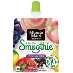 「ミニッツ メイド スムージー アサイーバナナMIX」はアサイーやバナナ、りんごなど、「ミニッツ メイド」が誇る高い品質の果汁、野菜汁を使用し、濃厚な味わいに仕上げた本格スムージーです。 ジューススタンドで手作りされるような果実感のある食感やおいしさにこだわり、甘味料や着色料、保存料を一切使用せずに、果実のすりつぶし(ピューレ*)をたっぷり使った大地の恵みそのままの甘さが特徴です。 とろ〜りとした食感なので小腹を満たしたい時や朝食等、また、ランチの後のデザートにもぴったりです。