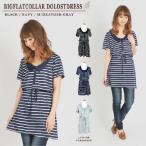 コクーン ワンピ 半袖 バイカラー ワンピース チュニック ミニ レディース ボーダー ワンピ ミニ丈 トップス 半袖ワンピ コクーンワンピース |