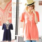 エスニックプリントが胸元と裾に施された、 夏にぴったりな可愛いチュニック丈ワンピです! ウエスト切り替えでスタイルアップ効果もアリ....... |