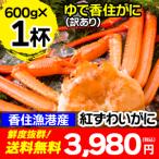 ■抜群の鮮度!紅ズワイガニ 食べ放題 送料無料 ■山陰 兵庫県香住漁港産「香住ガニ」(ベニズワイガニ)を産地より直送します。 ■こちらの商品はタグなし、(大)600g前後×3杯 ■漁場が近く、水揚げ直後その日のうちに釜茹でしますので、鮮度は抜群です。 高鮮度のかにの甘み、濃厚なかにみそを存分にお楽しみいただけます。 ■ぎっしり詰まったかに身はジューシーでぷりっぷりっ!到着後すぐにそのままでお召し上がりいただけます。 カニ 海鮮 お歳暮 ■名称:訳あり 紅ズワイガニ 600g前後 姿 1杯 ■販売者:有限会社アートワークス兵庫県高砂市中島3-6-6 ※別途、北海道は500円、東北地域は200円の送料がかかります。 沖縄県、離島は鮮度保持のため、配送対象外とさせていただきます。 予めご了承ください。