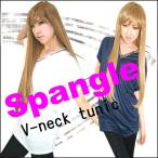 セール/バーゲン/円高還元 ゆったりとしたVネックなので 大人な着こなしになるよ ワンピとしてもTOPSとしてもOKなので あわせやすさも抜群です!! 襟元にスパンコールのポイントで 顔周りの華やかさをプラス シンプルTよりも 1ランクアップしたコーデに |