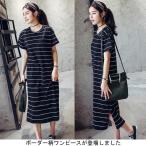 ロングtシャツワンピース 文字プリントワンピース ボーダー半袖 ラウンドネック 夏 結婚式<BR> 品番:9868....... |