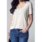ゆるっとしたヌケ感のあるシルエットが気負いのないお洒落を演出。 肩の線を落としたドロップショルダーのデザインはラフに着られこなれた雰囲気。 合わせやすく、だけどしっかりお洒落を演出してくれるのが魅力のTシャツ。 デコルテを綺麗に見せてくれるVネックラインは女性らしさを引き立ててくれます。 ロング丈だけで体型カバーもOK....... |