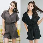S M L XL シンプルで上品なシルエットが女性らしさを引き立てるオールインワン オフショルダーのデザインで首元がすっきりと見え、爽やかな着こなしを演出 ウエスト部分のゴムを入れてゆとり感が女性らしいシルエットに仕上げてくれる パンツ部分は裾周りが広がっているワイドパンツ型 足首やふくらはぎの細見せ&脚長効果も抜群 |
