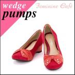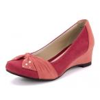 『Feminine Cafe(フェミニンカフェ) レディース リボン付きウェッジパンプス 56001 ピンク』 ドレープを寄せたつま先リボンに、キラキラと輝きのラインストーンを施した、フェミニンなウェッジパンプス。 リボン部分とカカトやヒール部分は、同系色 濃淡になるスエード素材を使用しているところも、こだわりが感じられるデザインポイント☆ 安定感のあるウェッジヒールで、さりげにスタイルアップができながら、丸みを帯びた可愛いらしい印象のラウンドトゥで、つま先の窮屈なストレス感が少なく、中敷には全体的に低反発クッションが搭載されているので、楽チン!デイリーにも、ちょっとしたお出かけにも活躍してくれそうな重宝アイテムです♪※展開サイズ:レディース |