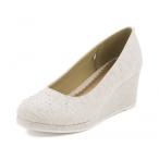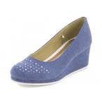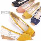 つま先に散りばめたラインストーンがアクセントになった、ウェッジソールパンプス。 カジュアルなスウェット素材のアッパーに、キラキラのストーンが映え、女性らしさをプラス♪ ヒールアップで美脚効果が期待できつつ、ウェッジソールなので安定感があり、歩きやすさも備えているのが....... |
