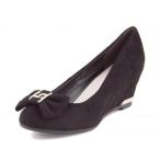 『Feminine Cafe(フェミニンカフェ) レディース リボン付きパンプス 400073 ブラック』 つま先のリボン&メタルパーツがポイントになったウェッジパンプス。 少し大きめのリボンにゴールドのメタルモチーフをトッピングし、上品な大人可愛い雰囲気に仕上がっています♪ヒール部にも、さりげなくゴールドのモチーフをあしらい、バックスタイルにも、ぬかりありません☆ヒールの高さも程よく、美脚効果に期待できつつ、ウェッジソールなので歩きやすさも....... |