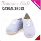 『Feminine Cafe(フェミニンカフェ) レディース レースアップスニーカー 11988 ネイビー』 靴紐を通しても、はずしても履ける2wayタイプのローカットスニーカー☆柔らかなスウェット調素材で、ちょっぴりキラキラ感のある素材を採用しています。 甲部分(ベロの両サイド)にはエラスティックバンド(ゴム)を内蔵し、フィット感を高めているのが特徴。 スリッポンならではの、気軽に履ける着脱のしやすさも魅力です。 また見た目よりずっと軽いので、とっても軽やかな履き心地♪スリムなトゥとシンプルなフォルムで、スカートにもパンツにも相性抜群のアイテムです。 ■サイズ換算目安:S(22-22.5cm)・M(23-23.5cm)・L(24-24.5cm)・LL(25-25.5cm)※展開サイズ:レディース |