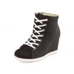 『Feminine Cafe(フェミニンカフェ) レディース レースアップウェッジスニーカー 417750 ブラック』 大人気のウェッジタイプのハイカットスニーカー☆ バツグンの安定感とウェッジスタイルのボリュームソールは、脚長効果にも期待大....... |