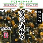 高菜(たかな)香味高菜油炒めは熱々ごはんやおにぎり、お茶漬けやお弁当に…また炒飯、パスタ、うどんにも良く合う甘辛醤油味… 上質の国産高菜を厳選して古漬けにした後で、洗って塩抜きを行い、食べやすく刻んでから、胡麻やかつお風味を甘辛の醤油味で調味した使い勝手がいろいろある高菜の油炒めです! 冷蔵/常温 |