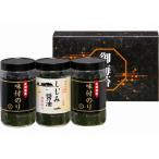 お世話になった方へギフトやプレンゼントにオススメ・妙味餐賛香雅味膳 味わいのある、焼き海苔佃煮、鶏そぼろ、味付け海苔、を添えた食卓を彩る食品セットです。 ■味付け海苔(8切8枚2袋)・焼き海苔佃煮(95g)・鶏そぼろ(35g)×各1入り ■箱サイズ/16.5×21.5×7.5cm ■賞味期間/常温1年 ※お熨斗はお付けできませんのでご了承下さいませ。