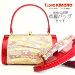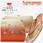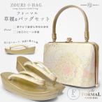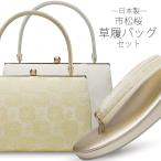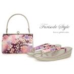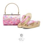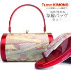草履バックコレクション バッグと草履の鼻緒に高級な帯地を使用した 草履バッグセットです。 こちらの商品はメーカーから直接大量に仕入いれて おりますので、大幅なマージンカットを実現しました! 色・柄ともに、幅広い年齢層の方にご使用頂けるよう、 厳選してセレクトしました。 <br> 色はゴールド・シルバー・ピンクから選んで頂けます。 <br> 数に限りがございますので、ご注文はお早めにお願いします。 ご注文時にプルダウンメニューで選択して下さい。 価格はご注文後に訂正させて頂きます。 ■サイズ ・バッグ 幅:約21cm<br> 高さ:約14cm(取っ手部分含まず) マチ:約9cm ・草履<br> 長さ:約24cm 高さ:約5cm(カカト部分) ・適応サイズ 23cm〜25cmの方に適応します。