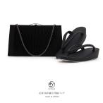 <バッグ> バッグは手持ち手(ハンドル)が簡単にとりはずし出来ます 持ち手有りと無しの2タイプでご使用いただけます。 表生地はプリーツ加工で上品な雰囲気になっております。 <草履> 表生地は台、鼻緒ともに合成皮革です。 つや消しの素材ですので落ち着いた黒色となります。 ダウンプルメニューからサイズMかLを選択してください。 <鼻緒伸ばしサービス> 鼻緒は1〜2回履かれると伸びますので痛みなどは少ないと思います しかし、甲が高い、幅が広いなど 足型の違いで 「きつい」「痛い」など感じられる場合もございます 鼻緒伸ばしのサービスもしておりますので一度ご相談下さい。 草履サイズはS・M・L・LLサイズがございます Sサイズ実寸21.5センチ(靴サイズが21cm〜22cm前後) Mサイズ実寸23.5センチ(靴サイズが22.5cm〜23.5 cm前後) Lサイズ実寸24センチ(靴サイズが24cm〜25 cm前後) LLサイズ実寸25センチ(靴サイズが25cm〜26cm前後) かかとの高さ4.3cm バッグサイズ<生地はナイロン生地です> 横幅21cm高さ13cmマチ 4cm (ハンドル部分) |