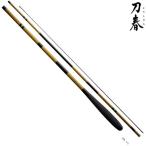 「刀春」は、穂先 穂持ちに力を持たせた「実釣仕様」の竿です。 やや硬めで張りのある調子は、振り込みやすく、アワセも鋭く感じられます。 6尺、7尺(穂先仕舞がついた3本2継)は、水郷情緒ある小水路などの野釣り場で、ケースに忍ばせておきたい粋な長さです。 伝統的な「段塗り」に「茜小紋研ぎ出し仕上げ」が施され、日射しの加減で小紋が浮かび上がります。 竿掛、玉ノ柄の塗りにも、こだわりました。 ■全長(m):4.8 ■継数(本):5 ■仕舞寸法(cm):107.2 ■自重(g):95 ■先径/元径(mm):1.1/12.3 ■カーボン含有率(%):98.8 ■シマノ |