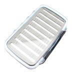 ■着脱可能な新形状薄型スノコ しっかり水切りできて着脱も可能。 本体にフィットするため側面部にエサがはさまりにくい。 ■一時的に刺しエサを置いておける凹形状かぶせフタ かぶせフタ式で、刺しエサの乾燥を防ぎ、雨水等の浸入を軽減。 ■ワンタッチで装着でき、バッカンのファスナーに干渉しにくいステンレスショートフック バッカンの外側だけでなく、内側にもセット可能。 また内側に装着したままバッカンのフタ の開閉が可能で、釣り座の移動時等も楽々。 外寸:(縦×横×高)約9×13×5(cm)