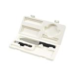 サイズ:まな板/(約)305×275×18mm(使用時)、庖丁/全長250mm(刃渡150mm)、三徳缶切/18×13×123mm 重量:(約)0.5kg 材質:まな板/ポリプロピレン、庖丁刃身/ステンレス鋼、庖丁柄/ポリプロピレン、三徳缶切本体/鉄(メラミン樹脂塗装)、切り刃/炭素鋼(クロムめっき)、穴開け/鉄(ニッケルめっき) |
