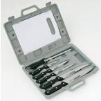 キャンプやバーベキューで大活躍。 収納ケースが付いた包丁7点セット。 これはお買い得です。 セット内容:包丁5本、まな板、ヤスリ棒 ケースサイズ:35cmx28.5x3.4 材質:ステンレス、ABS、ポリプロピレン シュリンクパック。